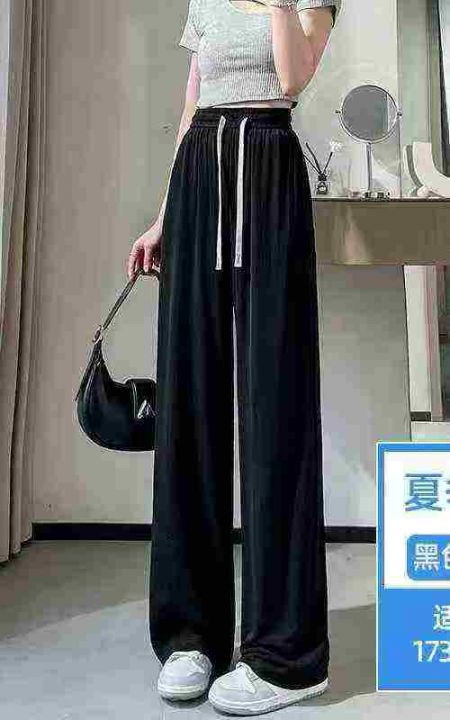 418件高腰垂感系绳宽松直筒冰丝阔腿裤,面料柔顺有质感,高弹力,品质非常...