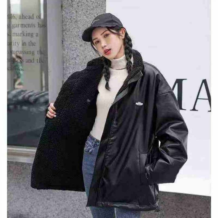 1100件,某猫在售两面穿棉服男女秋冬季ins加绒羊羔毛外套韩版潮流PU皮棉衣...
