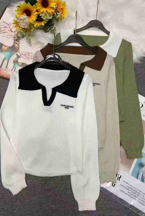 秋季新品撞色刺绣字母小清新百搭polo领针织套头毛衣,独立包装,均码面料柔...