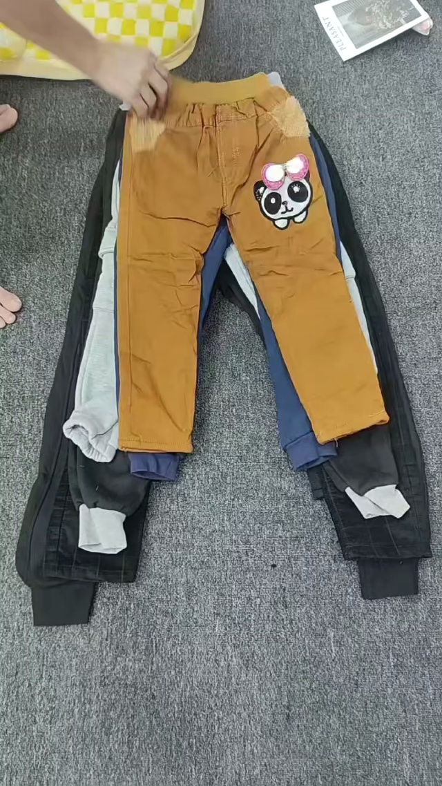 童装中大童秋冬杂款裤子,牛仔裤有70条左右,卫裤100条,防水袋装,有加绒...