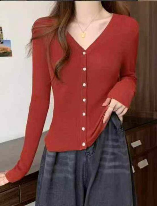 115件长袖t恤女辣妹炸街减龄v领polo针织衫内搭抽绳短款高腰露脐上衣潮,尺...