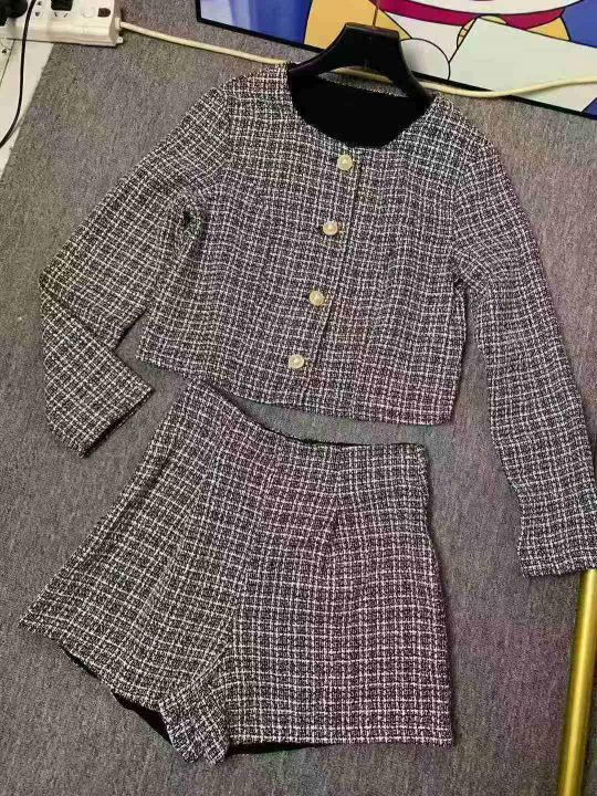 18.8清170套女装小香风外套短裤 两件套 复古圆领长袖格纹小香风粗花呢外套...