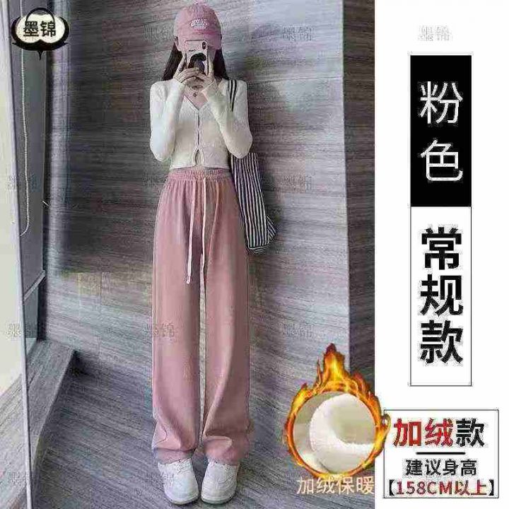 灯芯绒阔腿裤冬季加绒宽松垂感高腰显瘦休闲抽绳直筒女裤,整款三色,独立包...