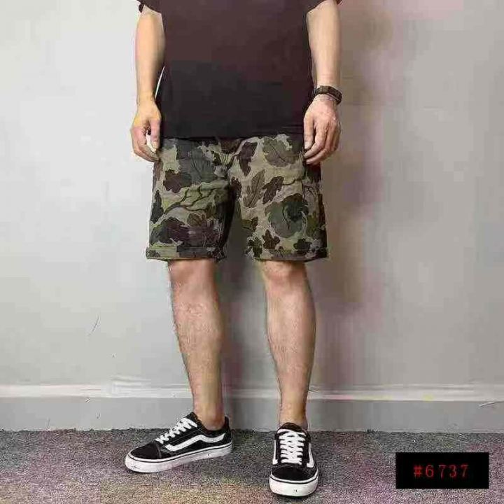 全清7.843件夏季薄款工装裤 树叶迷彩短裤男潮个性沙滩裤直筒休闲纯棉四分五...