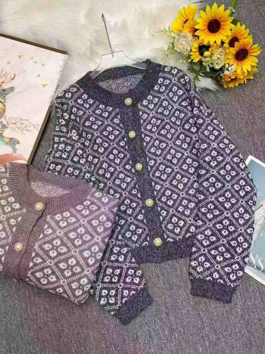 秋冬新款高品质女装欧洲站宽松慵懒风撞色小香风提花北极绒毛衣开衫,独立包...