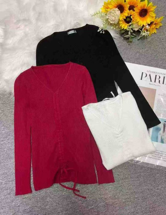 秋季新品韩版V领抽绳设计款包芯纱套头毛衣,独立包装,均码面料软糯舒适弹...