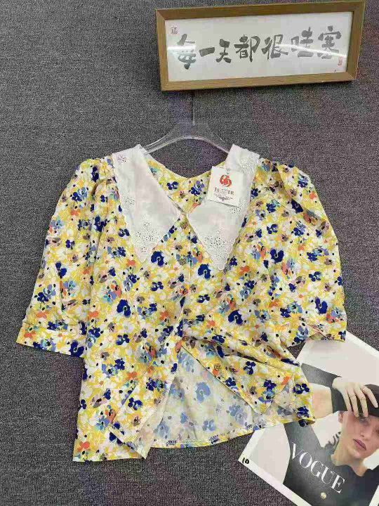设计感小众碎花衬衫70件7.9,复古花边设计,泡泡袖,码数S,M,XL-4XL,独...