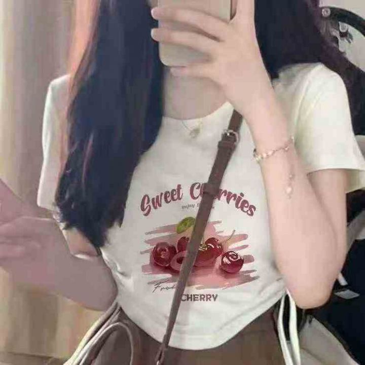 2025夏季辣妹抽绳设计百搭新款短款上衣多巴胺修身收腰短袖t恤女,整款单色...
