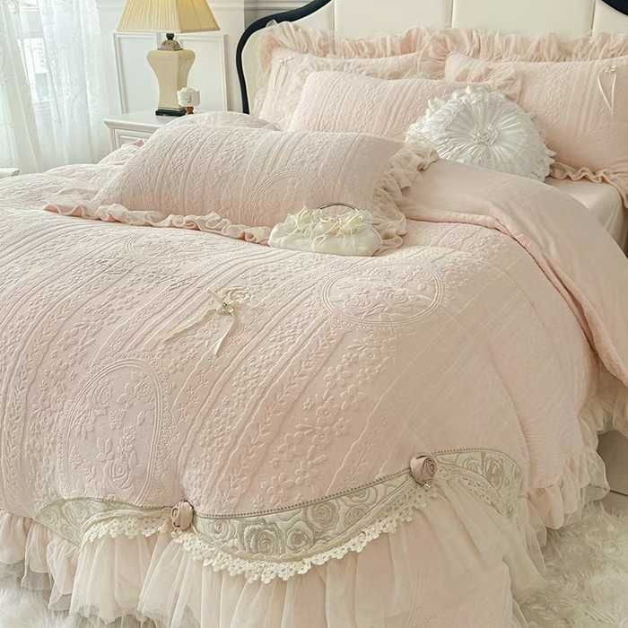 全消光牛奶绒雕花四件套 公主风好仙哦[色][色][色]少女心爆棚了[捂脸]...