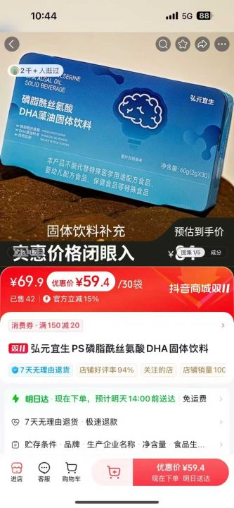 DHA藻油固体饮料60g(2g×30) 5000盒, 26年5月到期