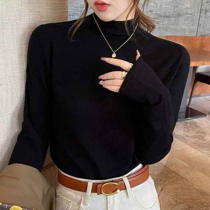 秋冬新款净版简约百搭基础款半高领打底外穿包芯纱套头毛衣,独立包装均码,...