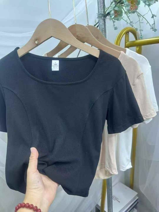 冰丝螺纹纯欲方领短袖t恤女2025夏季修身chic别致独特甜辣妹正肩短款上衣,1...