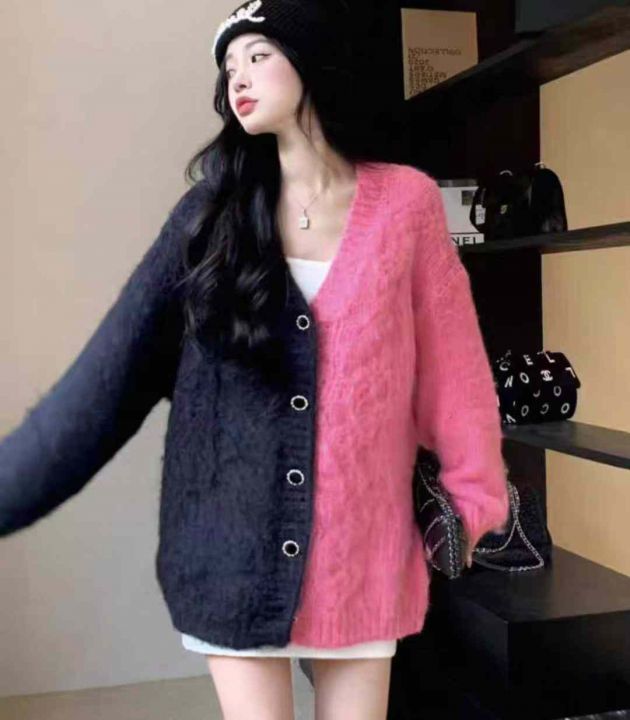 秋冬新款宽松撞色加厚款港风设计款毛衣开衫外套,独立包装,均码面料软糯厚...