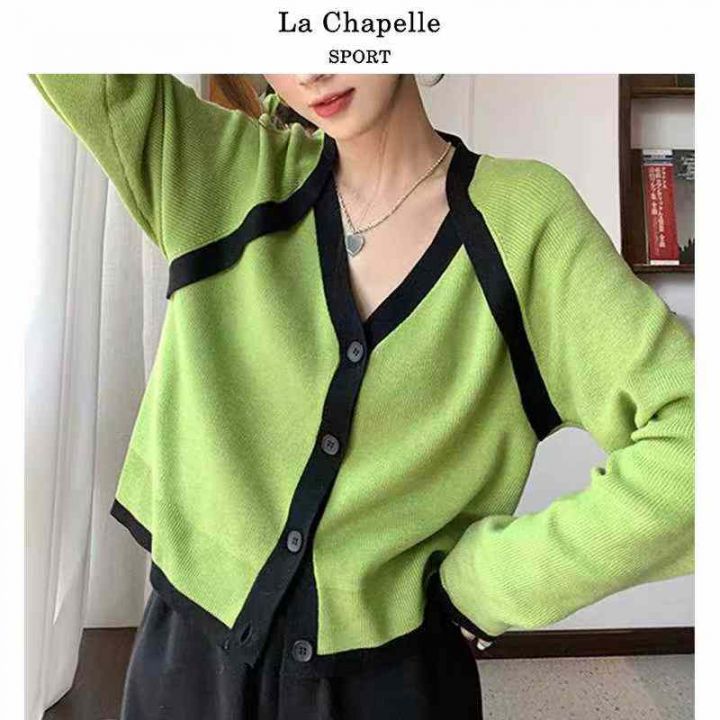 品牌原单宽松慵懒风短款小香风设计感撞色拼接粗针毛衣开衫,独立包装带吊牌...