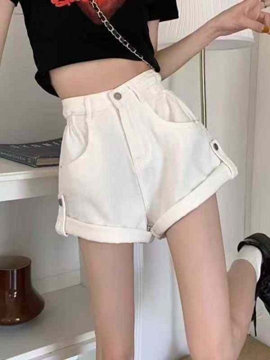 夏季网红爆款高品质洗水棉辣妹宽松显瘦小众卷边a字阔腿高腰牛仔短裤,独立...