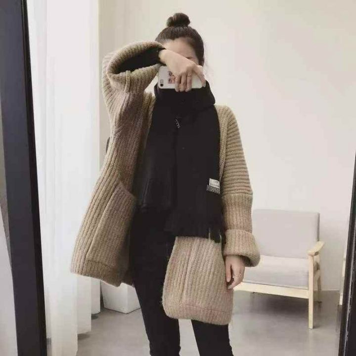 品牌原单韩系宽松净版简约粗针大口袋毛衣开衫,独立包装带吊牌,均码面料软...