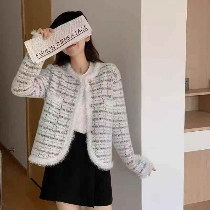 全清24.8元,2000件左右,春秋季新款宽松洋气小香风针织毛衣开衫仿水貂外套...
