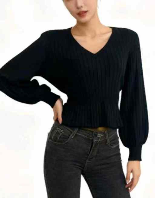 秋冬新款宽松韩系气质松弛感V领绑带设计弹力修身收腰显瘦两条毛包芯纱套头...