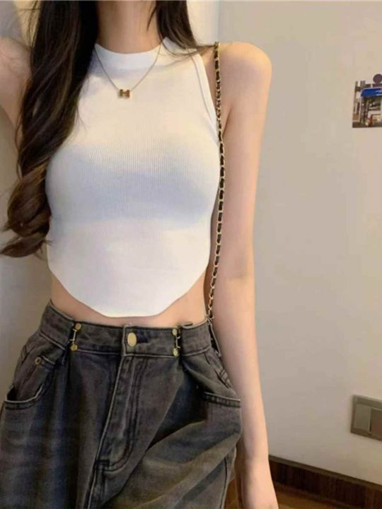 夏季新款甜辣妹性感小众不规则弹力修身显瘦针织背心,独立包装,均码面料柔...