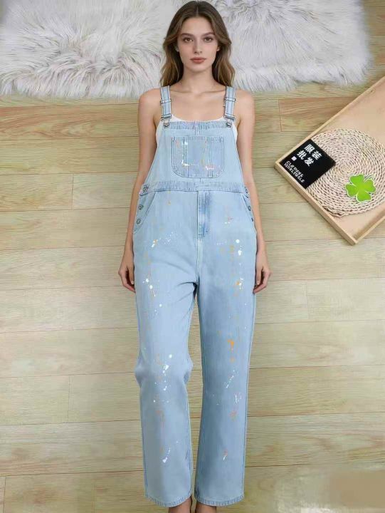 #Jeans wholesale外单女士扎染休闲牛仔背带裤,单款两色,数量90条,尺寸S...