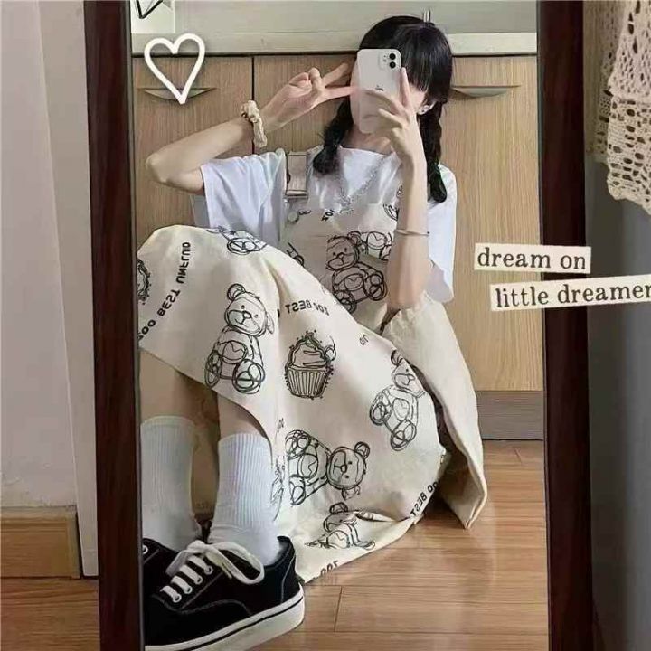 260件左右卡通小熊印花学院风背带连衣裙女中长款宽松吊带裙工装A字裙,品质...