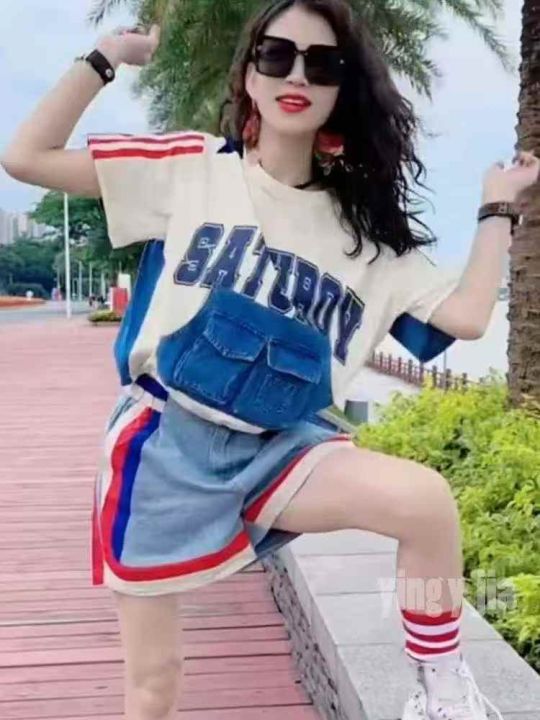 全清价6.8休闲运动套装女夏季炸街减龄时尚洋气撞色短袖短裤显瘦两件套,独...