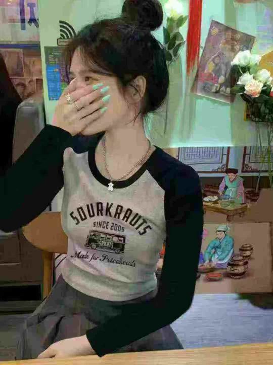全清价6.5撞色插肩长袖修身显瘦螺纹辣妹T恤,独立包装,码数1-5码,高弹,...