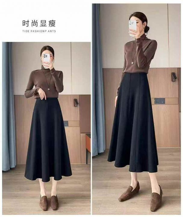 秋冬新款复古时髦优雅赫本气质高腰中长款A字伞裙毛呢半身裙,独立包装,码...