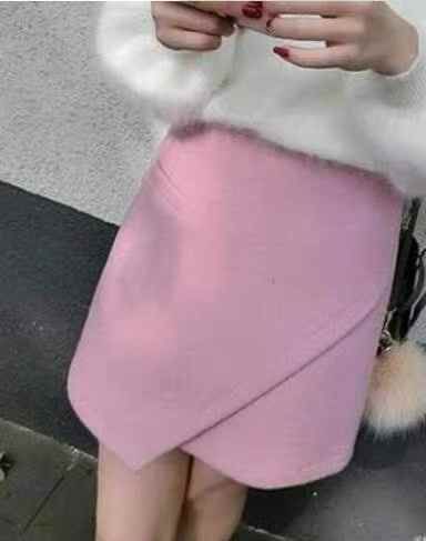 秋冬新款净版港味纯欲粉色设计感不规则A字半身毛衣裙,独立包装,码数S-L码...
