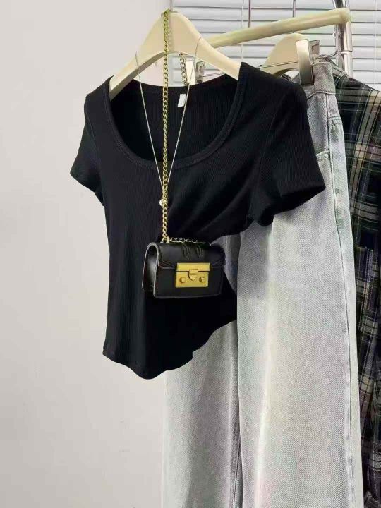 辣妹短袖T恤夏季正肩新款修身显瘦短款上衣,独立包装,货品干净,模特供参...