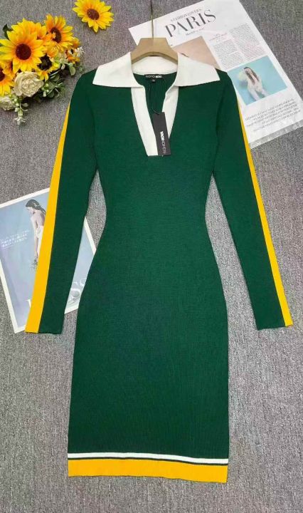 品牌原单韩版弹力修身显瘦打底外穿polo领针织毛衣连衣裙,独立包装带吊牌,...