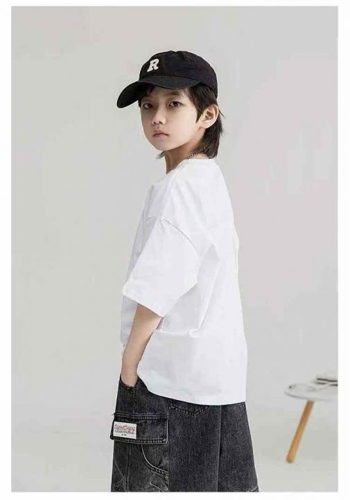 7576件\'夏季新款中大童韩版纯色凉感半袖体恤儿童上衣,20件一包装,黑白两...
