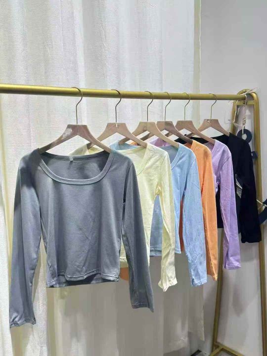 修身纯欲U领纯棉打底衫吊带裙内搭长袖T恤女紧身大领口上衣春秋季,数量245...