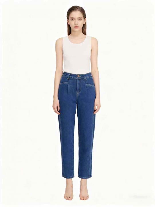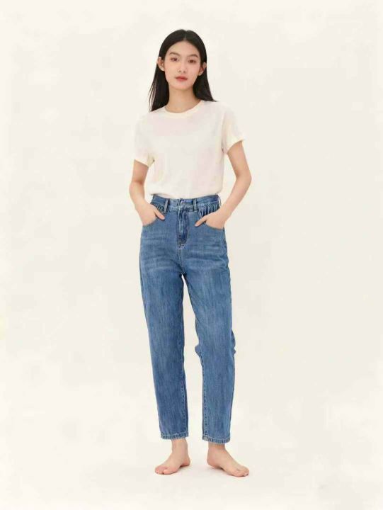 天猫下架洗水棉网红爆款松紧腰哈伦牛仔老爹裤,独立包装带吊牌带防伪扣,码...