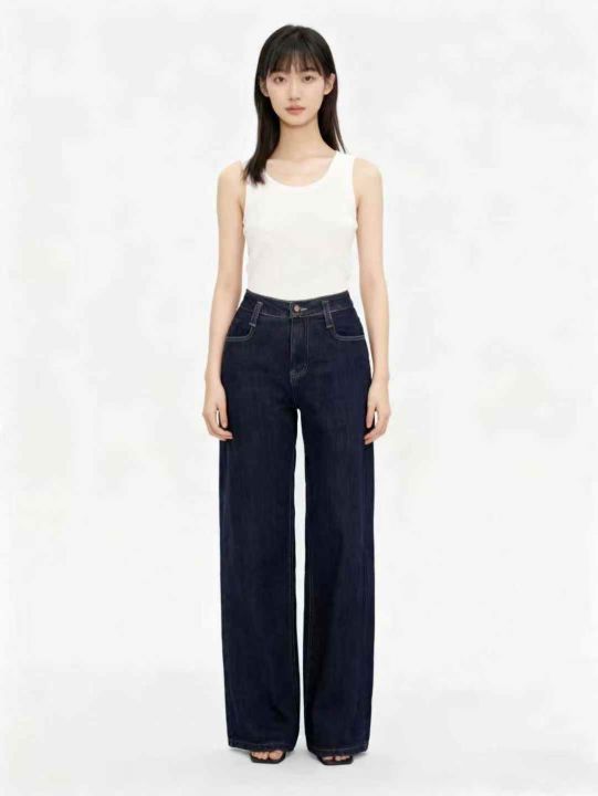 天猫下架冬季新款高腰松紧腰高弹力加绒直筒牛仔长裤,独立包装带吊牌,码数...