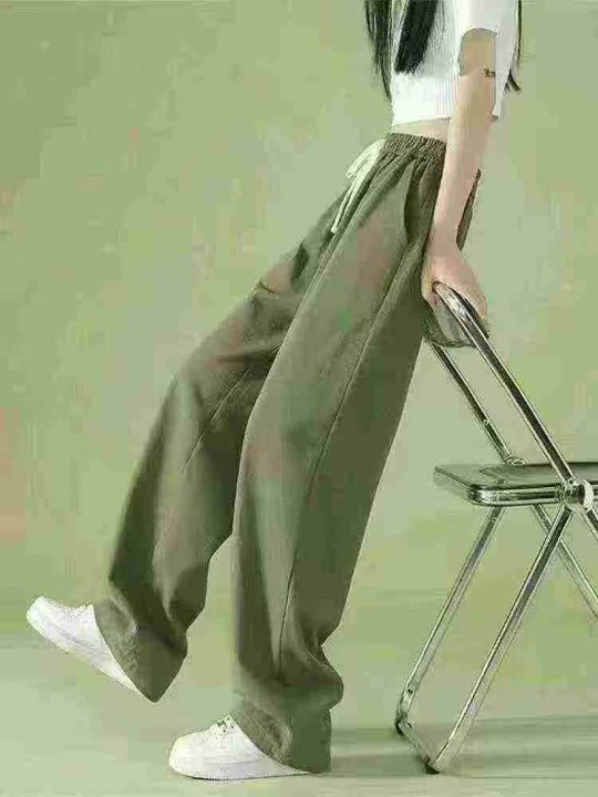 全清7.9美式复古运动裤女2025年新款显瘦阔腿宽松直筒休闲卫裤,大货军色为...
