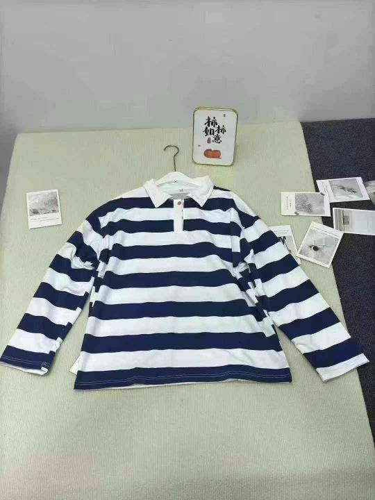 春秋薄款撞色条纹polo领棉质T恤潮牌小众设计感宽松别致,数量928件,码数M-...
