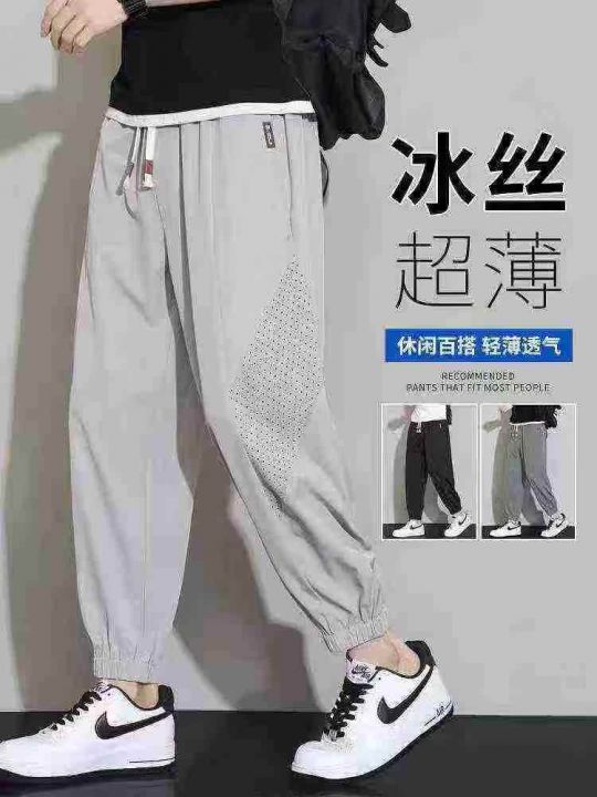 网眼拼接款微弹力冰丝束脚运动休闲裤,男女同款,258件,M-L,独立包装吊牌...