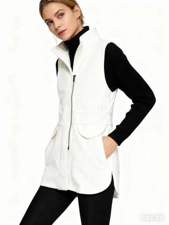 秋款马夹卫衣无袖拉链立领外套纯棉背心女款宽松开衫【纯白色存在微微黄,微...