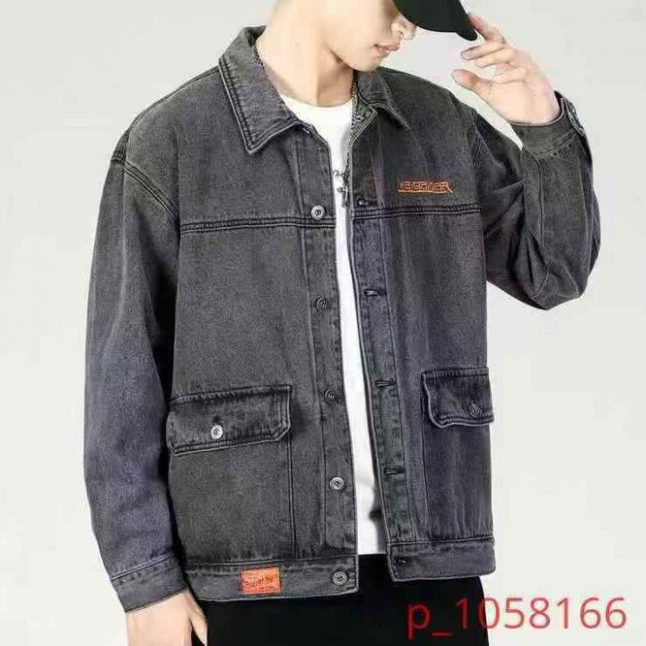 牛仔夹克男外套夏季新款宽松休闲大码干活防晒多口袋刺绣牛仔上衣,(注有问...