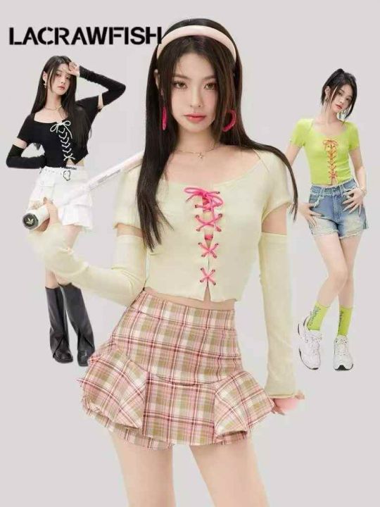 春夏季新款辣妹性感绑带设计感独特别致针织小衫,独立包装,均码面料柔软舒...