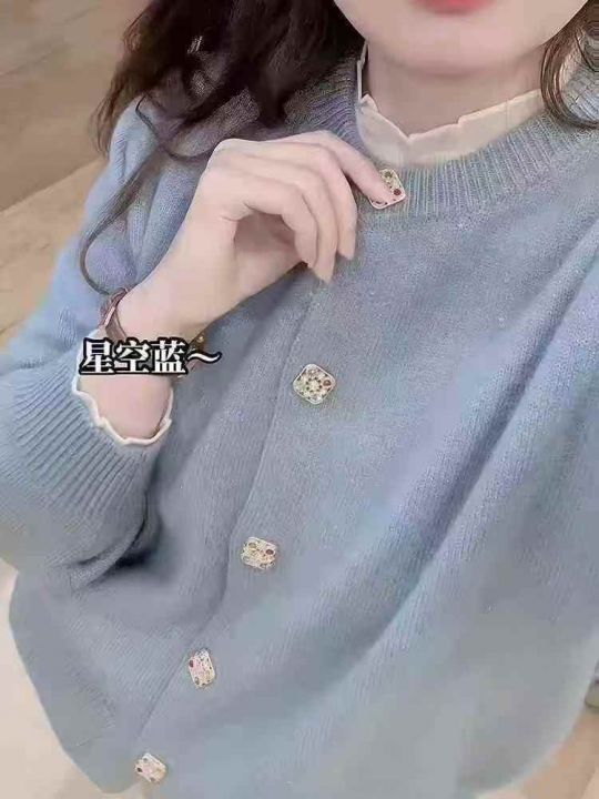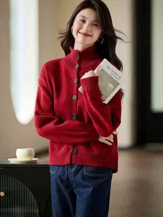 全清13.8,秋冬韩系慵懒风立领长袖针织开衫上衣女装宽松显瘦软糯...