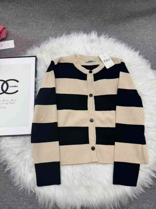 全清13.8,2025秋款圆领条纹宽松显瘦长袖单排扣针织开衫女百搭减...