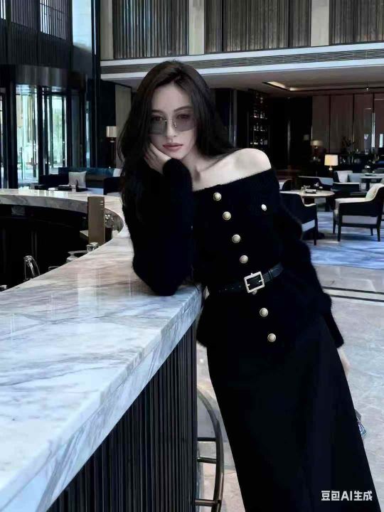 全清18.8,气质名媛黑色一字肩水貂绒毛衣女装2025秋冬独特超好看...