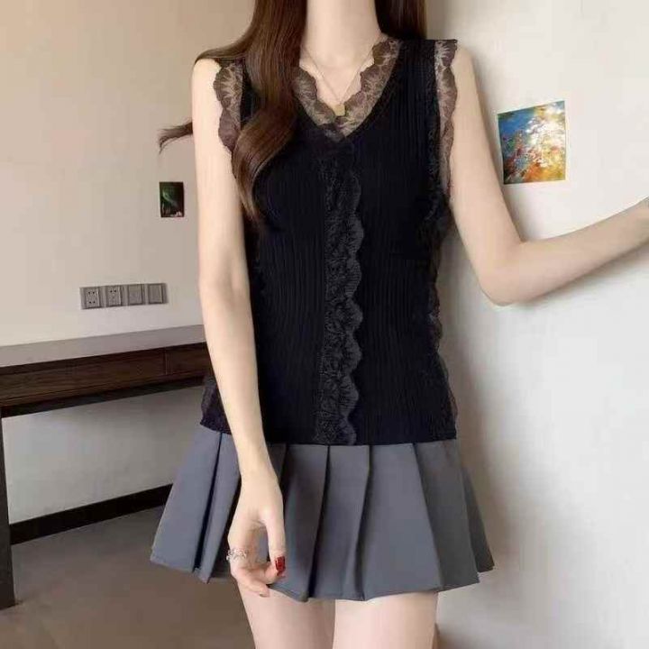 品牌原单宽松百搭设计款蕾丝拼接针织背心,独立包装带吊牌,2款多色看图,...