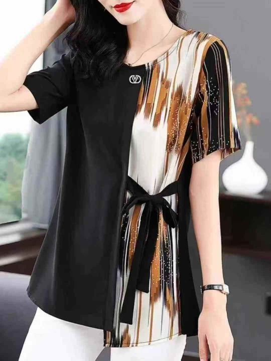 全清价6.5元捡漏121件时尚气质短袖t恤新款中长款百搭显瘦上绑带收腰上衣,...