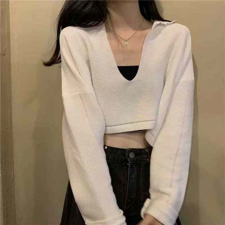 秋季新品法式宽松短款慵懒v领长袖针织衫,独立包装,均码面料柔软舒适,190...