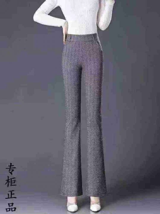 全清6.9 秋冬加绒女装条纹长裤,高腰显瘦喇叭裤,设计感垂感直筒微喇裤,...