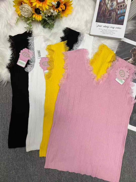 品牌原单宽松百搭设计款蕾丝拼接针织背心,独立包装带吊牌,2款多色看图,...