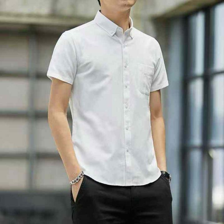 3000件\'【透气】韩版男士商务休闲正装牛津纺纯色立领短袖微修身潮流衬衫,...